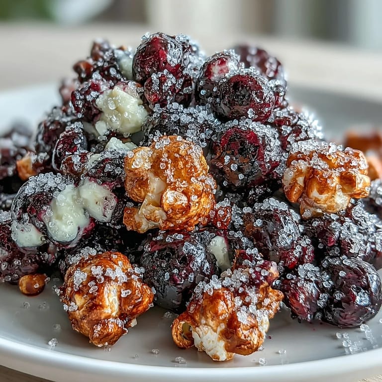 Pin The secret to this recipe lies in the use of freeze-dried powders, which provide an intense, concentrated flavor and a beautiful purple hue without making the popcorn soggy. By tossing the warm kettle corn in the cheesecake-black currant essence, every kernel gets a perfectly balanced coating of sweet, salt, and tang.