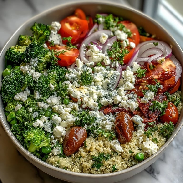 Pin There's something about a grain bowl that makes you feel like you've got your life together, even on the most chaotic Tuesday afternoon. I discovered this particular combination while standing in my kitchen on a rainy spring day, staring at a bag of quinoa and wondering what could possibly make it exciting. The answer arrived in the form of bright green broccoli, sweet peas, and a generous handful of crumbly feta that somehow transformed the whole thing into something I actually craved rather than merely tolerated. My partner walked in mid-chop and asked if I was making salad, and I had to laugh because this felt like so much more than that.
