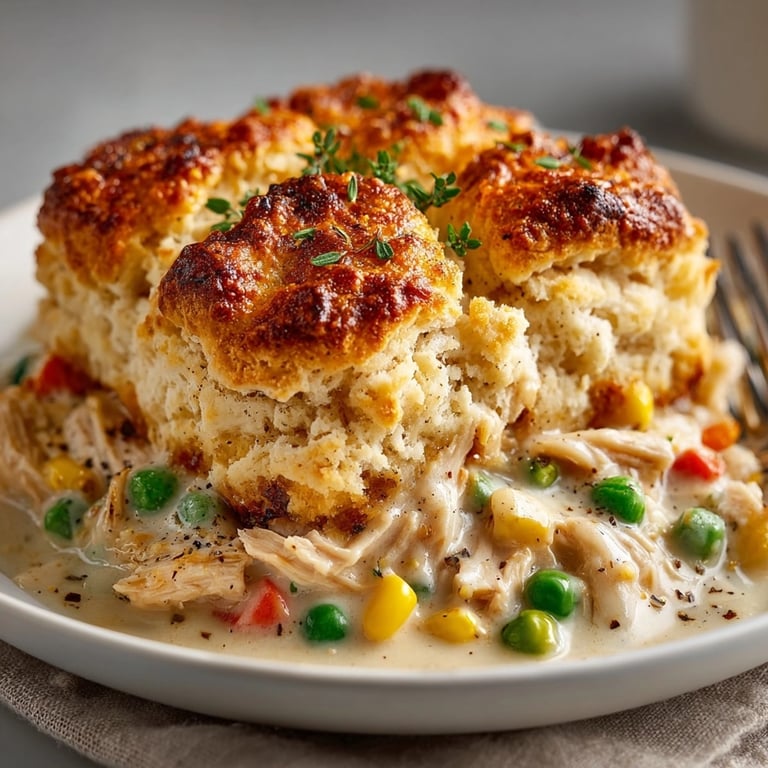 Pin The biscuit topping is probably my favorite partsoft and golden with just enough crunch at the edges. When my mom made this growing up she always hid a little extra butter under a few of the biscuit drops for that secret crispy bite.
