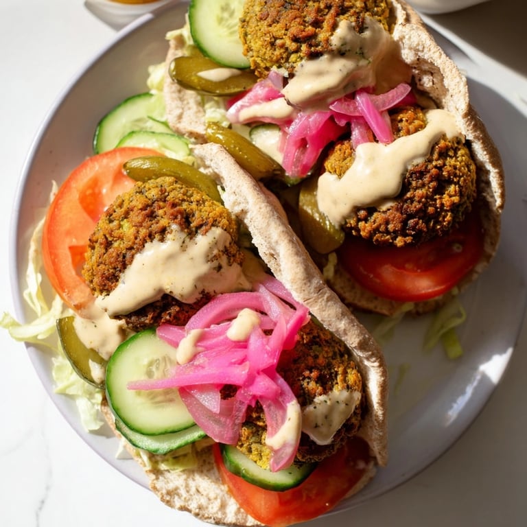 Pin Crispy homemade falafel tucked into pillowy pita, loaded with fresh veggies and draped in a silky tahini sauce—this classic street food brings the flavor of Middle Eastern markets right into your kitchen. A satisfying vegetarian meal that bursts with color, textures, and so much bold taste, it is crowd-pleasing and easy enough for a weeknight or a casual get-together.