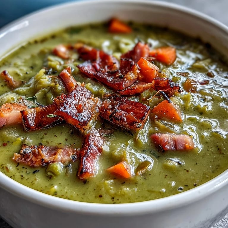 Pin My grandmother's kitchen always smelled like this soup simmering on the stove, especially on cold afternoons when the windows fogged up from the steam. She'd start it in the morning, and by lunch, the whole house felt warmer just from the aroma of smoked ham and split peas merging together. Years later, I realized she wasn't just making soup—she was creating a ritual, a reason for everyone to gather around the table with something honest and filling. This recipe carries that same magic, and honestly, it's become my go-to when I need comfort that tastes like home.