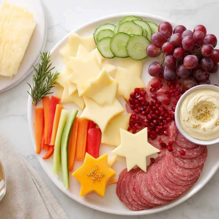 - Cluster fruits, vegetables, and crackers around the stars, balancing colors and textures.