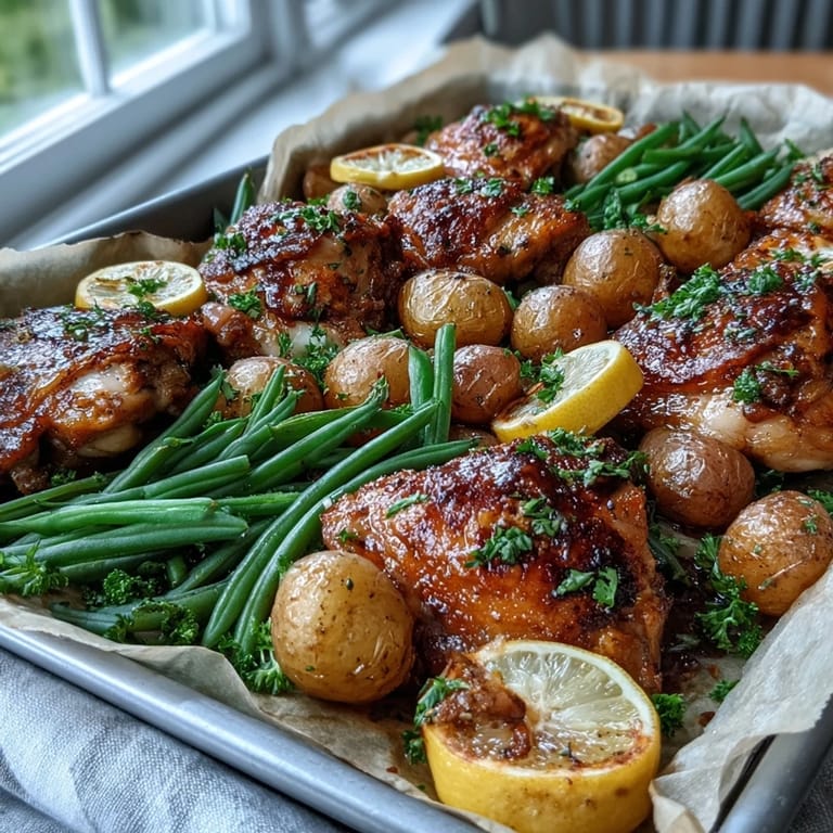 Pin There's something about the smell of lemon and garlic hitting a hot sheet pan that makes everything feel effortless, even on nights when I barely have energy to cook. This chicken came together one Tuesday when I was tired of fussing with multiple pots and wanted something that tasted like I'd actually tried. One sheet, everything roasting at once, and by the time I'd set the table, dinner was golden and ready.