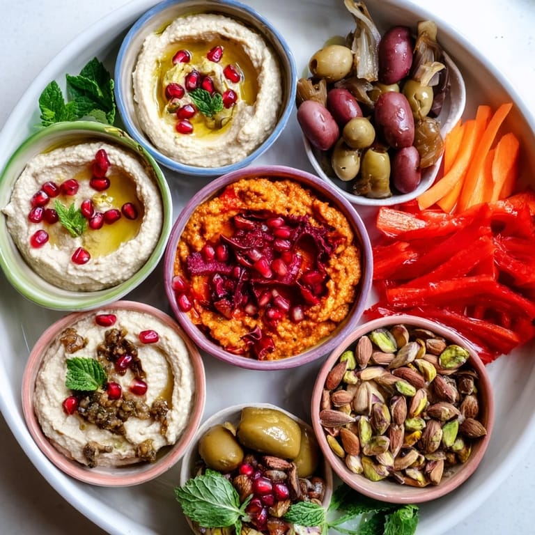 I made this platter for the first time when my sister came to visit from out of town, and I wanted her to feel like we were sitting in that same riad together. The moment she walked into the dining room and saw the arrangement of bowls with their layers of color—the red muhammara, the pale hummus, the jewel-toned olives—I watched her face light up exactly the way mine had in Morocco. We ended up spending three hours at that table, talking and tasting, and she asked for the recipe before she left. That's when I knew this wasn't just food; it was a way to share an experience.
