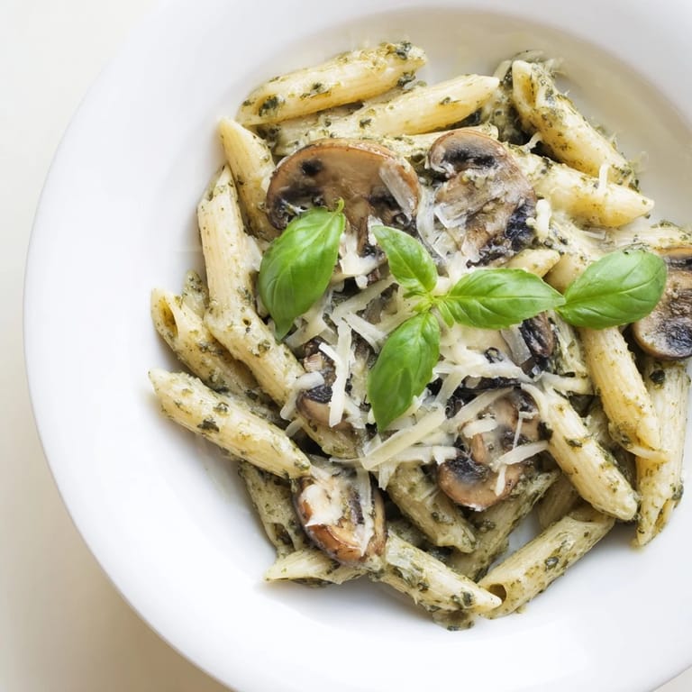 Pin The smell of garlic hitting hot butter always stops me in my tracks. One Tuesday evening, I stood at the stove tossing sliced mushrooms in a skillet, watching them shrink and brown, their earthy scent filling the kitchen. I had a jar of pesto in the fridge and a box of penne in the pantry, and suddenly this dish came together like it had been waiting for me all along. It tasted like something you'd order at a cozy trattoria, but I made it in under half an hour wearing socks and an old sweater.