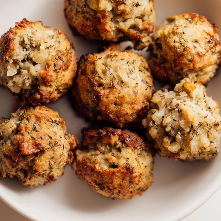 Pin Savory, golden stuffing balls bursting with herbs and festive flavors—perfect for a speedy holiday side or appetizer.
