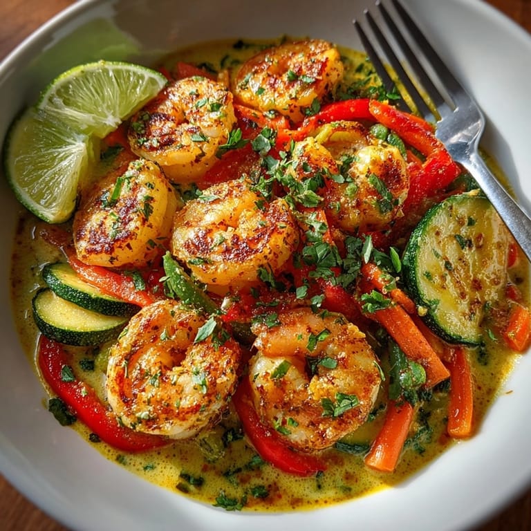 Curries like this are inspired by coastal Indian and Thai cuisines where coconut milk and seafood are local staples The bright vegetables echo street food stalls where color and aroma draw you in This dish bridges the Thai style of red curry paste with the comfort of gentle Indian spices