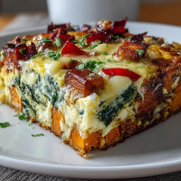 Fresh fruit, a light green salad with vinaigrette, or crusty whole grain bread all pair nicely. For brunch, consider serving alongside roasted potatoes or fresh sliced tomatoes. It's hearty enough to stand alone as a complete meal.