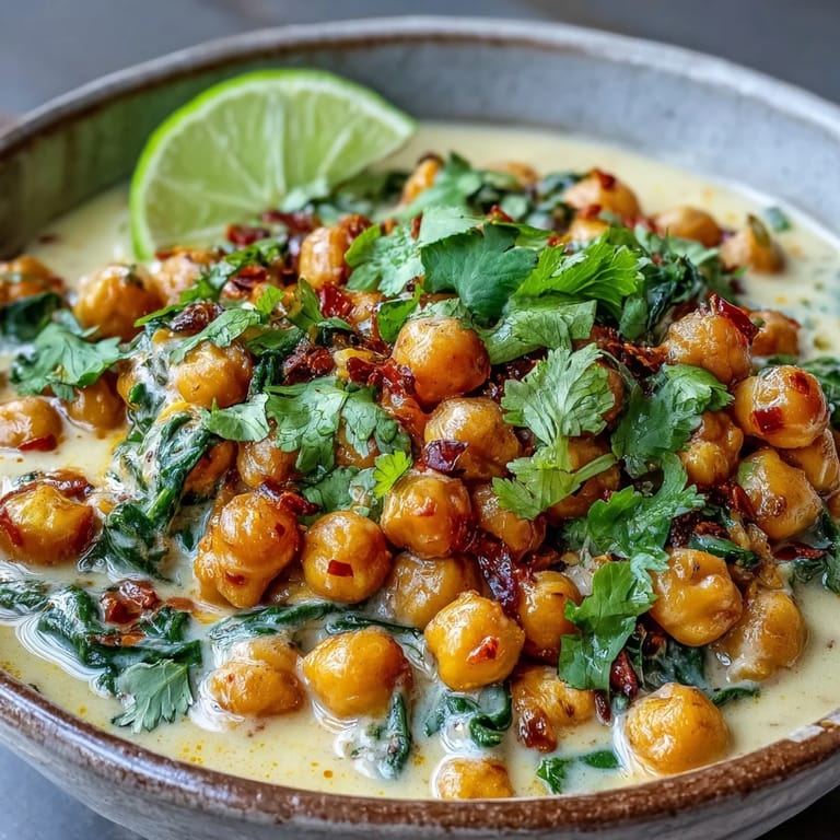 Pin I discovered this chickpea curry on a rainy Tuesday when my pantry felt disappointingly bare. Three cans and a forgotten coconut milk carton later, I'd stumbled onto something that tasted like warmth itself. The kitchen filled with that unmistakable blend of toasted cumin and ginger, and suddenly the gray afternoon didn't matter anymore. My partner wandered in halfway through cooking and asked what smelled like a restaurant, which felt like the highest compliment possible. Now it's become my go-to when I need comfort without fuss.