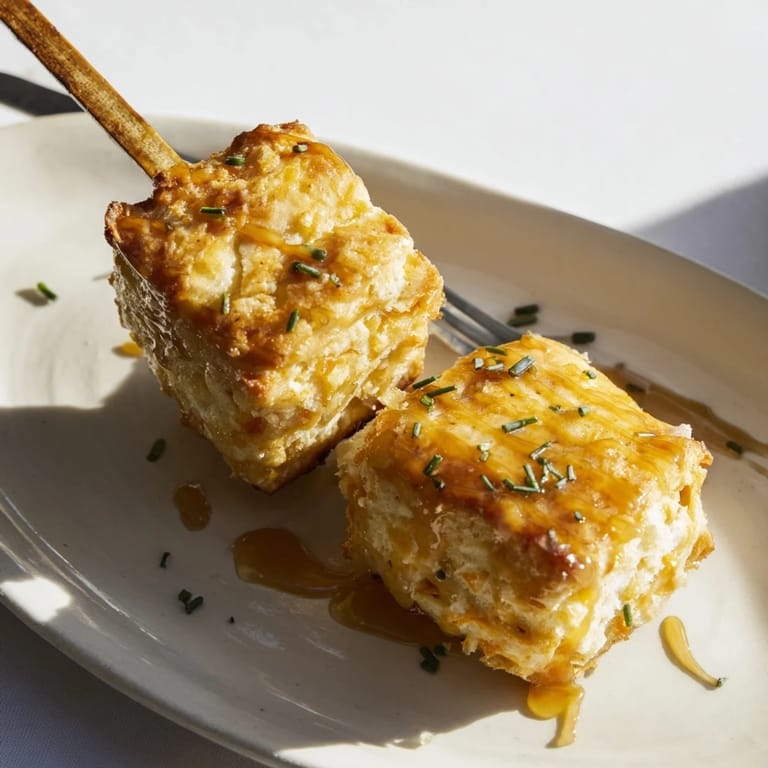 I first made these skewers for a family brunch where everyone loved the fun presentation and warm, gooey cheddar inside each biscuit. The maple bourbon glaze adds a gourmet touch that makes this appetizer unforgettable.