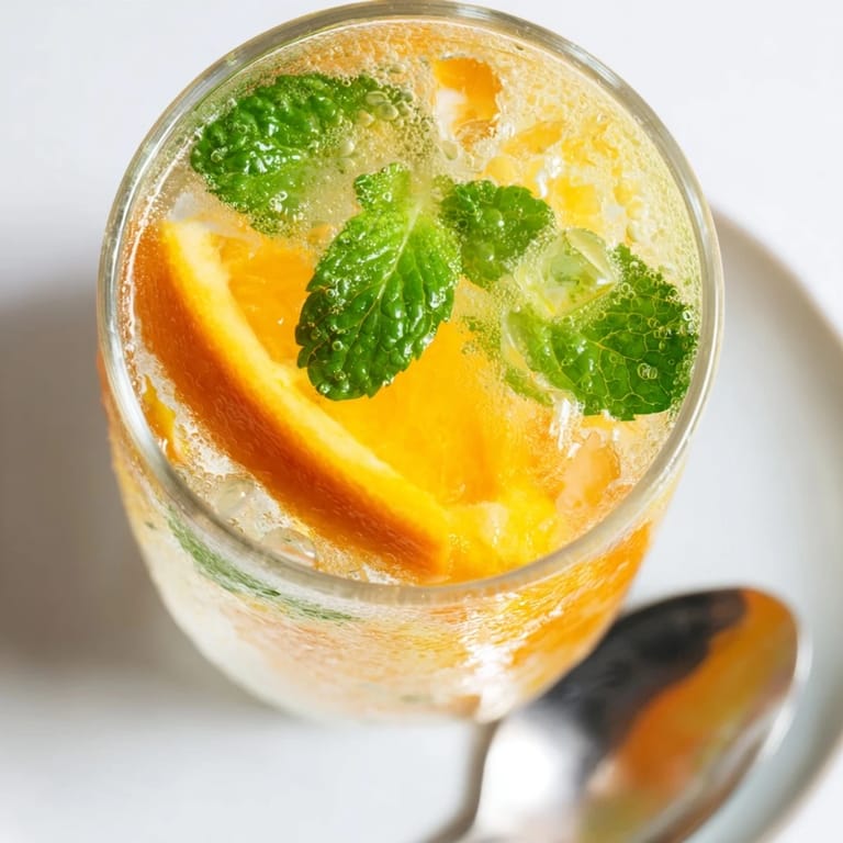 - Fill glasses with ice cubes pour the mocktail over and garnish each with a slice of orange and extra mint if desired. Serve immediately for best fizz.