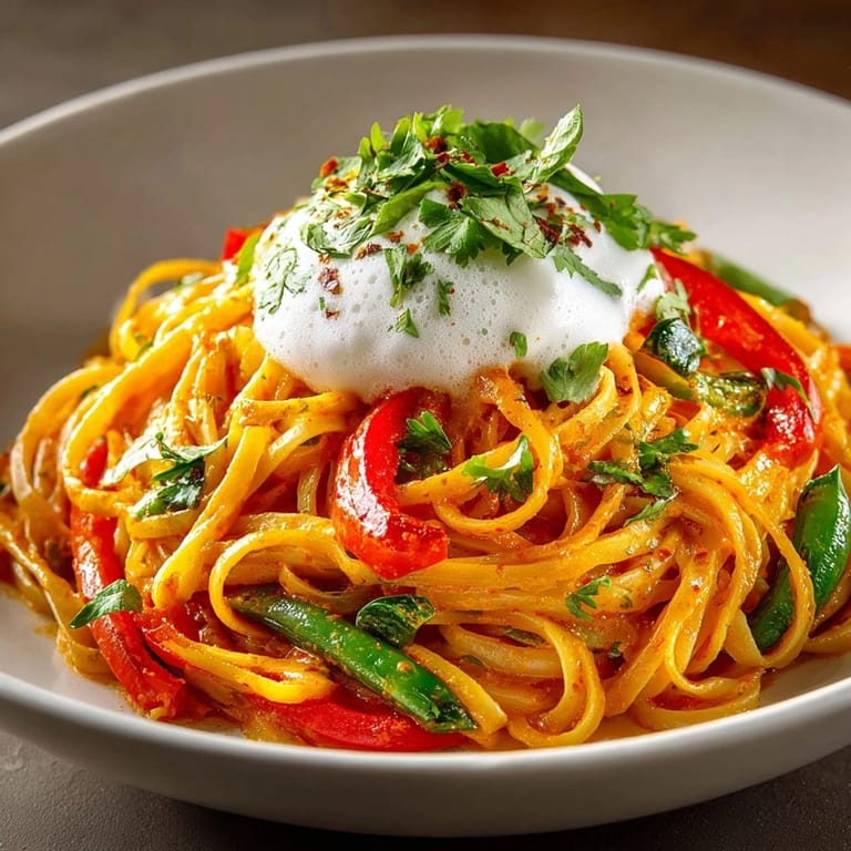 Pin This Thai curry pasta brings together two culinary worlds in perfect harmony. The aromatic spices of Thailand meet Italian comfort food, creating a dish that's both familiar and excitingly different. The coconut milk foam adds a touch of culinary elegance while keeping the dish approachable for home cooks.