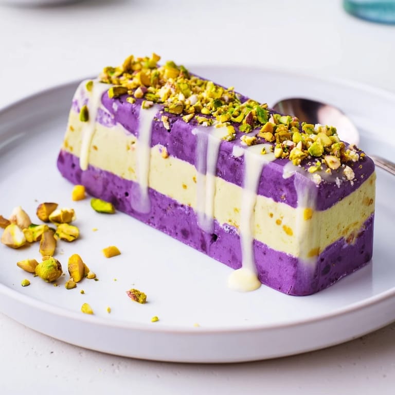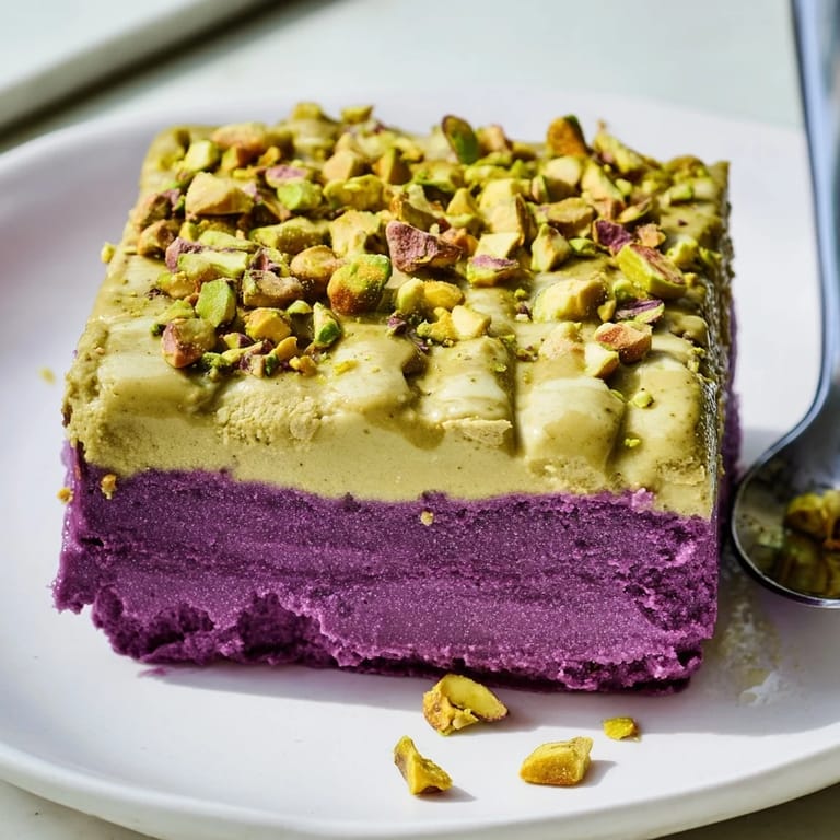 Pin Creamy, vibrant ice cream bars featuring sweet ube and nutty pistachio offer a delightful contrast in flavor and color. These treats are perfect for a refreshing summer dessert or an impressive addition to gatherings.